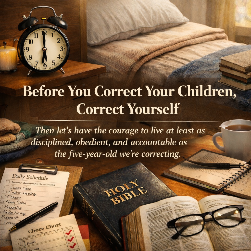 It is easy to require discipline from a five-year-old. It is far harder to demand it from yourself and other adults. Yet if the adults in the home do not embody the very order they insist upon (if they run late, make excuses, neglect responsibilities, live inconsistently, and treat God’s commands casually) then every list, schedule is nothing more than hypocrisy. Children do not merely hear what we say; they study what we do and what we tolerate in ourselves. If true restoration is our aim, it must begin not with tighter enforcement upon children, but with uncompromising accountability among the adults charged with training those children.