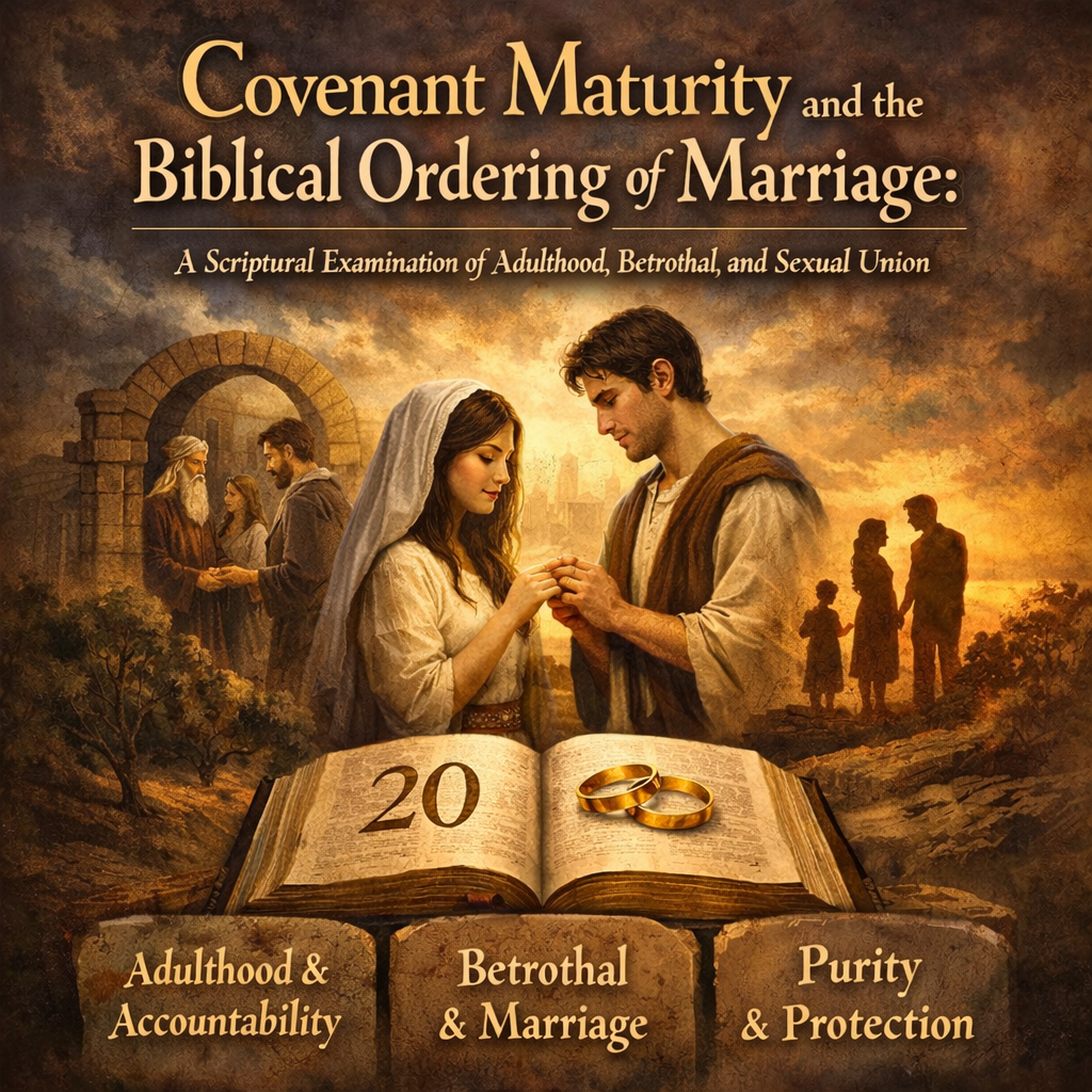 First, Scripture defines adulthood as a covenantal status marked by full moral, legal, and communal accountability, consistently located at twenty years of age. Second, marriage in Scripture is a covenantal institution that presupposes this status. Third, betrothal functions as a protective, preparatory covenant that does not authorize sexual consummation. Fourth, the canonical narratives provide no example of lawful adult-minor consummation. Fifth, tradition lacks the authority to override this framework, and early corroborative evidence aligns with it rather than contradicting it.