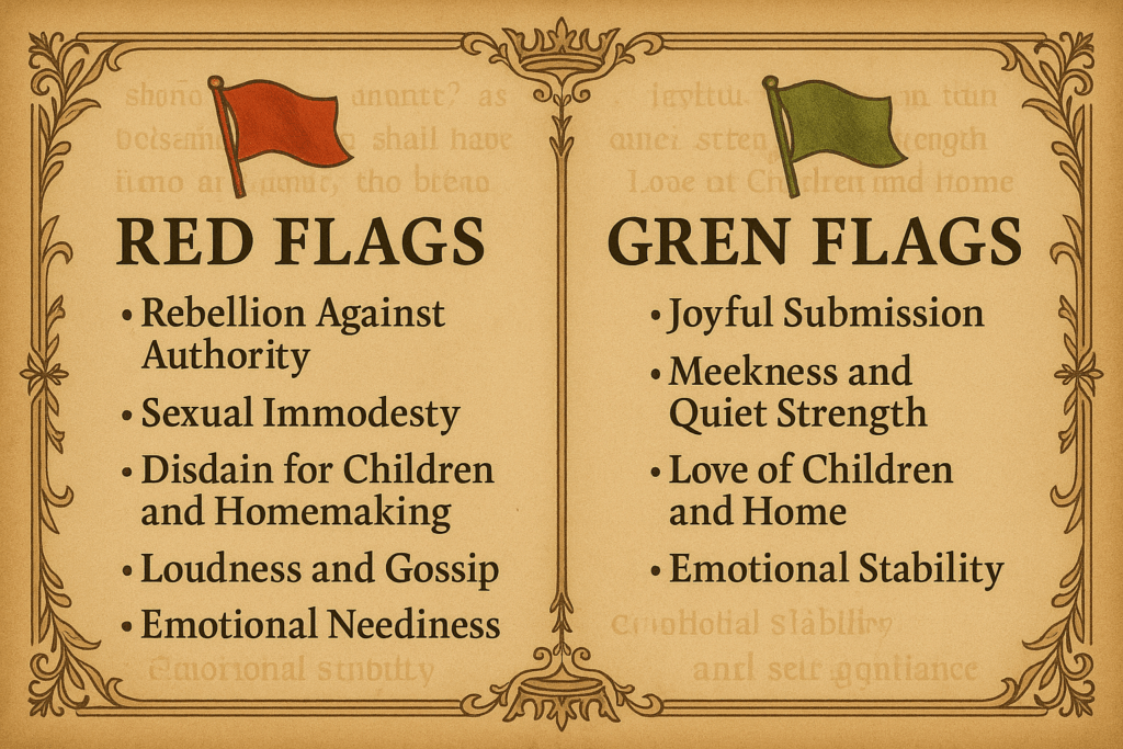 If a man is to take a wife and lead a household unto dominion, he must reject the foolish, culturally acceptable markers of compatibility and measure her by biblical womanhood. Here are true red flags in a woman.